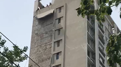 (高層住宅外墻保溫板被大風(fēng)吹落)