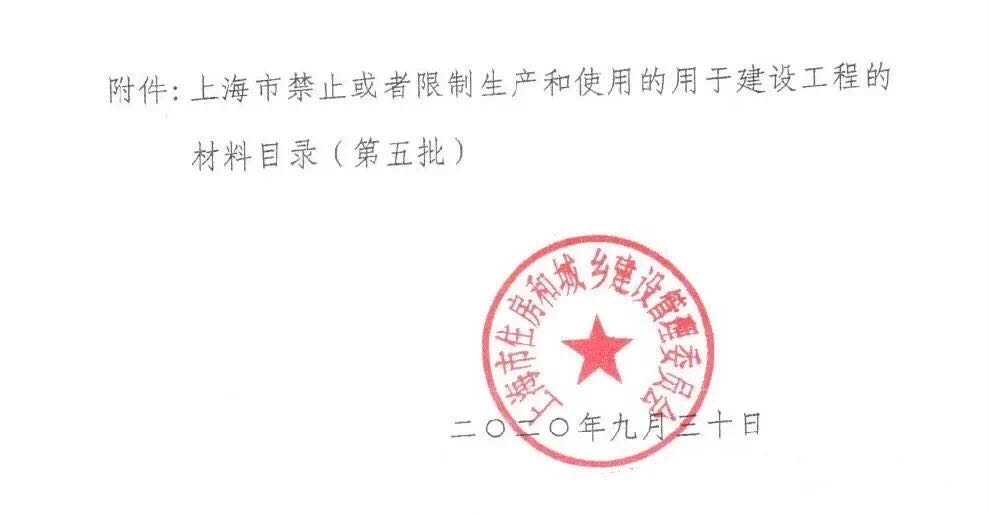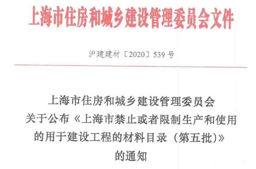 《上海市禁止或者限制生產(chǎn)和使用的用于建設(shè)工程的材料目錄(第五批)》